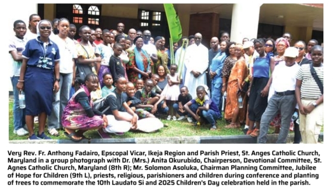 The human race have been tasked to be conscious of their activities and take good care of the earth, their common home, as young Nigerians are urged to see the pressure and challenges around them as stepping stones, and not as deterrents to development. The charge was given by Very Rev. Fr. Anthony Fadairo, Parish Priest, St. Agnes Catholic Church, Maryland, during the 10th anniversary of Laudato Si, and Jubilee of Hope for the Children Conference/Children’s Day celebration, with the theme, “Hope alive-Becoming light in a world of pressure,” organised by the Devotional Committee recently in the parish.