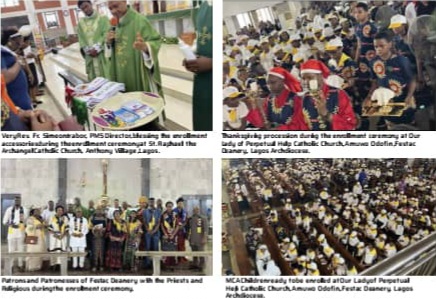 In a vibrant celebration of faith and mission, the Festac Deanery recently enrolled 439 children and 13 patrons into the Missionary Childhood Association (MCA). The enrollment ceremony, which drew participants from eight parishes within the deanery, took place at Our Lady of Perpetual Help Catholic Church, Amuwo Odofin, Festac. Enrollment into the MCA is a significant milestone for baptised children under 14 years, introducing them to the mission, aims, and objectives of the association.