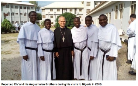 After his election, Pope Leo XIV in picture with some of his Augustinian confreres who lived with him in the community in Rome. Two of them are Nigerians. One of his confreres of the Augustinian Order described Pope Leo XIV as “a very simple person, and one who puts you at ease in his presence. A jovial and balanced person, one who stands in the crowd as one among the people. He is courageous, and a man of the missions and of the peripheries. He prefers to drive himself and would eat the most simple or common meals just like the poor and the lowly.”