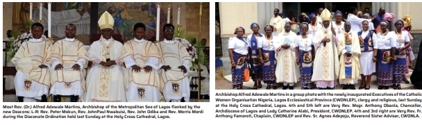 The Archbishop of the Metropolitan See of Lagos, Most Rev. (Dr.) Alfred Adewale Martins has charged newly ordained deacons to recognise that their ordination is not a human achievement but an act of divine grace that must bear fruit in service to others. He gave this charge while delivering his homily at the ordination of four candidates into the sacred order of deacons and the inauguration of the newly elected officers of the Catholic Women Organisation Nigeria, Lagos Ecclesiastical Province (CWONLEP), held at Holy Cross Cathedral, Lagos, on Sunday, September 28, 2025.