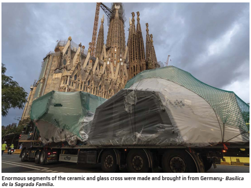 That final piece, which is nearly 15 ft (4.5 m) tall, completes the grouping of the six central towers of the church – and brings the basilica’s height to a dizzying 566 ft (172.5 m). Interestingly, the cross was built in Germany using white enameled ceramic tiles, stone interior and glass that were made in the Spanish region of Catalonia. It was then transported in parts back to Barcelona by ferry and trucks, and finally assembled at the church. Those materials were chosen to realise celebrated architect Antoni Gaudí’s idea of having the cross shine day and night. Indeed, the cross, with its double twist geometrical design, is large enough on the inside that it has a spiral staircase running up it, and will have light streaming through its windows.
